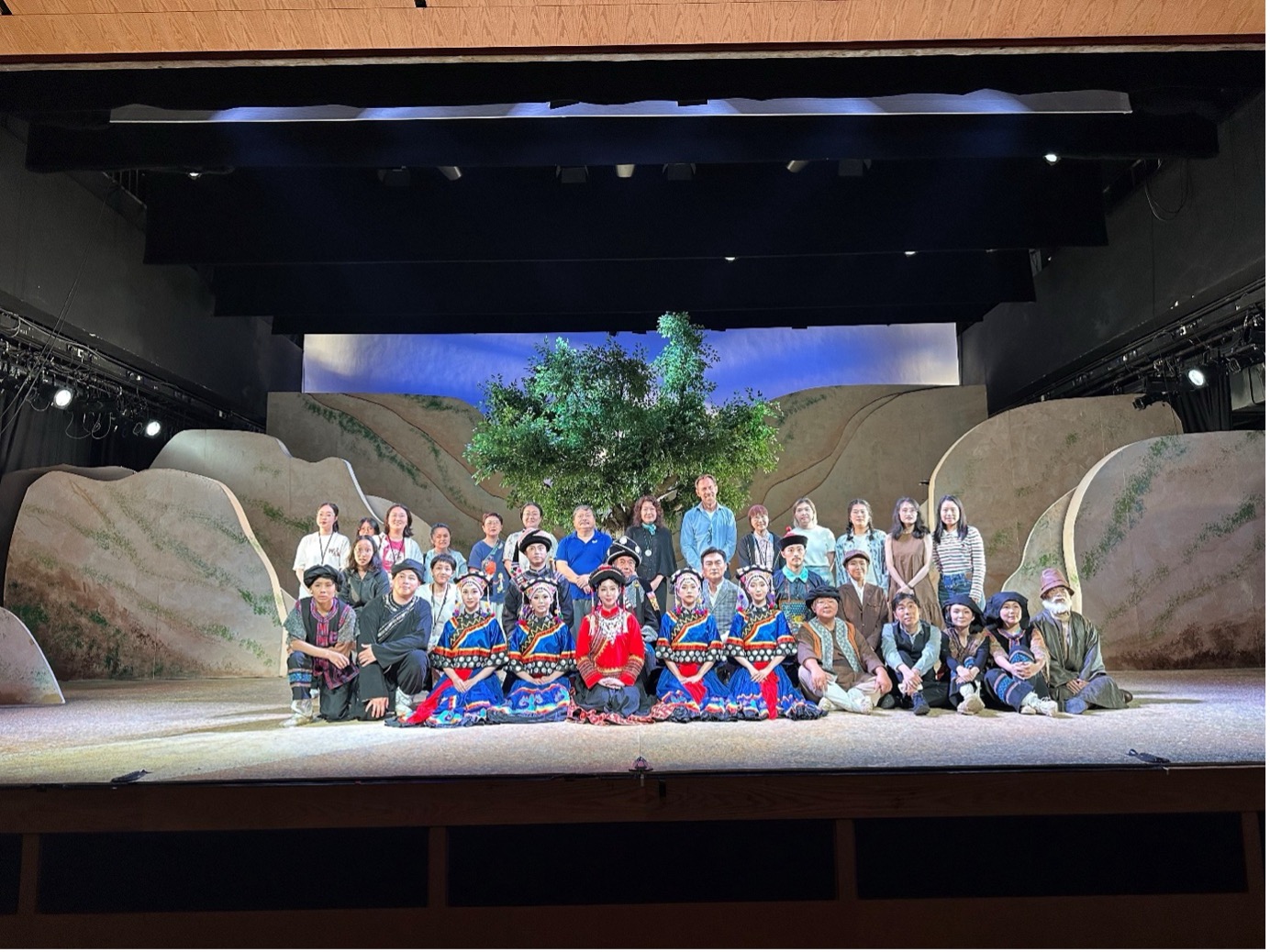 The stage play in Cantonese, "Tea-Horse Road · Ballad of Fallen Dragon", with audio description (AD) was successfully shown on 18 July 2025 providing AD service for more than 30 people with visual impairment. CityUHK's Department of Linguistics and Translation (LT) co-organised the event with the Hong Kong Audio Description Studies Association (HKADSA), Hong Kong Blind Union, and the China Federation of Literary and Art Circles Hong Kong Member Association Ltd (HKL&A). The event was held to promote inclusive services for people who are visually impaired and to enhance students' language and AD skills.