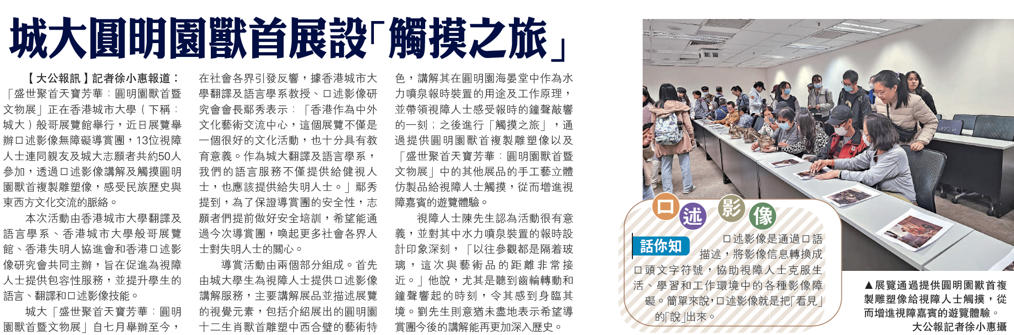 城大圓明園獸首展設「觸摸之旅」